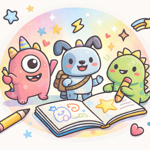 Kids invent their own characters, creatures, and worlds—building imagination and confidence every page.